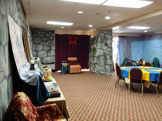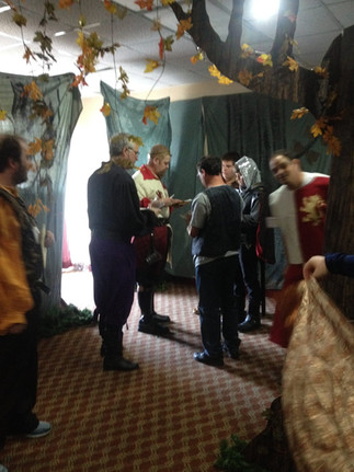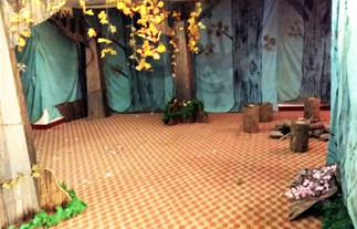 Setting the Scene – One of our best sets ever! Thanks to Brandon for the backdrops, Mike for the trees, Renee for her genious and hardwork, and Chuck for helping make it all happen!